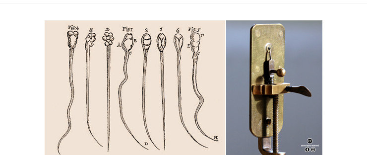 정자, 처음으로 그 모습을 드러내다 1679년의 어느 날, 중년의 남자는 그 날도 자신이 직접 만든 현미경을 들여다보며 스케치에 빠져 있었다. 그의 이름은 안톤 판 레이우엔훅(Antonie van Leeuwenhoek, 레벤후크, 1632~1723). 그는 현미경과 자신이 그린 스케치를 번갈아 바라보았다. 현미경을 통해 다양한 종류의 미생물들을 관찰한 그였지만, 이런 형태의 생물은 처음이었다. 작은 올챙이처럼 생긴 개체들은 힘차게 꼬리를 흔들며 뒤엉켜 있었다. 더욱 놀라운 것은 이 것들이 정액 속에서 발견되었다는 사실이었다. 그는 최초로 생식세포의 하나인 ‘정자(精子, sperm)’를 발견한 것이었다.