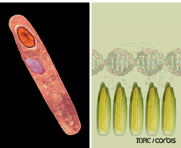 둘째, 유전자 재조합은 종의 유연관계에 전혀 관계가 없습니다. 전체 유전자가 아니라 한 두 개의 유전자만을 골라서 재조합하는 것이기 때문에, 심지어는 적어도 생물 분류 체계 중 가장 상위 단계인 ‘계(Kingdom)’가 다르더라도 재조합에는 아무런 상관이 없지요(옥수수는 ‘식물계’이지만, 박테리아는 ‘원핵생물계’에 속합니다). 이러한 유전자 재조합 생물들의 특징은 장점인 동시에 단점이 됩니다. 종간의 유연관계가 상관없기 때문에 다양한 유전자들이 뒤섞일 수 있고, 이렇게 뒤섞인다고 하더라도 외형상의 변화가 거의 없을 수도 있기 때문에 우리는 유전자 재조합된 생물을 전혀 모른 채 접하고 먹고 입고 살아갈 수도 있으니까 말이죠. 시장에서 유통되는 두부나 콩나물, 옥수수 통조림 등에 원산지 표시와 함께 유전자 재조합 여부를 표시하도록 되어 있는 것은, 이들이 육안으로 보기에는 그렇지 않은 것과 전혀 다를 바 없기에 소비자들에게 선택권을 주고자 함이랍니다. |