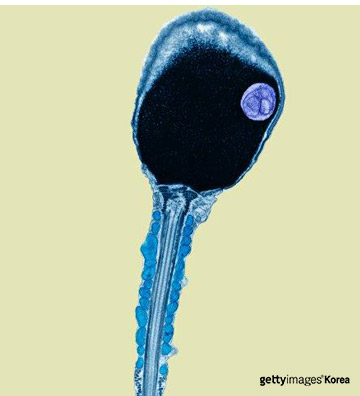 세포질유전(모계성유전) 설명을 조금 보탠다. 0.1 mm 크기의 난자에는 세포막과 세포질(세포소기관)을 다 가지고 있지만 0.06 mm 밖에 안 되는 정자는 정핵(精核,머리)과 몇 개 안 되는 미토콘드리아가 붙어있는 꼬리(편모)만 있어서 도통 세포질이 없는 괴이한 세포이다(처음 정모 세포는 세포질을 가졌음). 어찌하였거나 난자에는 30만개의 미토콘드리아를, 정자는 유전정보가 담긴 머리와 헤엄칠 꼬리 사이에 고작 150개를 가지고 있고, 수정하면 정자가 가지고 들어온 미토콘드리아를 난자가 거부반응을 일으켜 송두리째 부숴버린다고 한다. 결국 수정란 속에는 아버지의 미토콘드리아는 하나 없고 고스란히 어머니의 것만 들었다! 이것이 바로 미토콘드리아의 모계성유전, 또는 세포질유전이다. 너와 나, 우리의 미토콘드리아는 단연코 어머니의 것! |