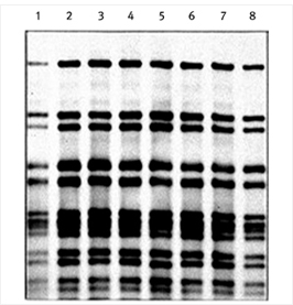 즉, SNP가 자주 나타나는 DNA의 부위를 특정 제한효소로 잘라보면 특성에 따라 다양한 길이의 DNA 조각들이 나타나게 됩니다. 이제 할 일은 DNA 조각들의 크기를 비교해 보는 것입니다. 그렇게 잘려진 DNA의 조각들의 완벽하게 일치한다면, 두 DNA는 동일한 사람에게서 나왔을 확률이 99.9999% 정도 된다고 말할 수 있습니다.